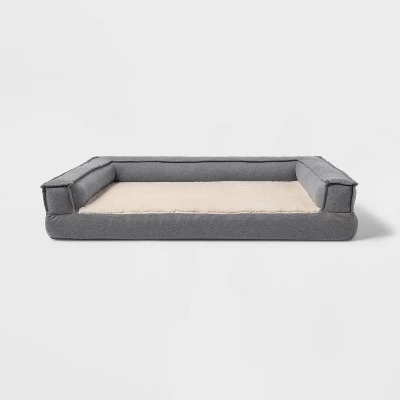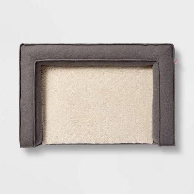 Create a comfy retreat for your pet friend with this Three-Sided Bolster Dog Bed from Boots & Barkley™. Designed in a classic rectangular silhouette, this dog bolster bed features a raised bolster sides on three sides to offer them a comfy place to rest their head. Draped in a soft fabric with soft foam filling, it features a faux-shearling surface for cozy comfort during nap time, sleeptime or simply while sitting. The non-slip base helps keep it in place, while the removable cover can be tossed in the washing machine for easy upkeep whenever needed. Featuring a gray hue with cream faux-shearling sleep base, it’s sure to complement your existing decor style.