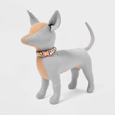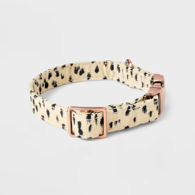 Update your dog-walking essentials with this Animal Print Fashion Adjustable Dog Collar from Boots & Barkley™. Featuring a black leopard spot print on a light beige backdrop for an eye-catching look, this dog collar makes a fashionable dog accessory for daily walks or family hangouts. The adjustable collar offers a comfortable, customizable fit around their neck, and it comes equipped with a metal clip-in clasp closure for easy on/off and a D-ring for convenient leash and ID tag attachment.