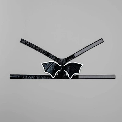 - Black bat wings strap around pet’s neck and torso