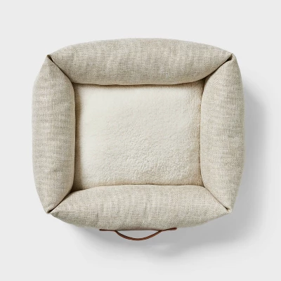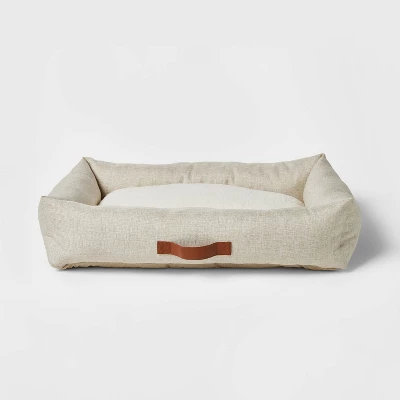 Your dog will love relaxing in this Neutral 4-Sided Bolster Dog Bed from Boots & Barkley™. This rectangular dog bed in a neutral cream color coordinates with any home decor. Designed with raised bolster sides, it creates an enclosed space for your pet to sleep and rest their head. The soft foam fill provides cushioned comfort and support, while the faux-shearling surface offers them a soft and cozy surface. The nonskid base helps keep the bed in place, and the carrying handle offers easy portability.