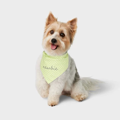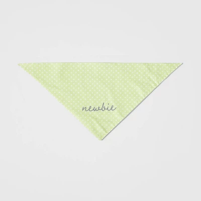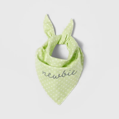 Dress up your furry friend for fun outings with this Cat and Dog Bandana from Boots & Barkley™. This triangular pet bandana features an allover + and 0 print along with gray ‘newbie’ text on a soft green backdrop for a whimsical look. Made of soft cotton material to keep them comfy, this bandana is easy to secure around their neck by tying at the back. Plus, it can be machine washed for easy care.
