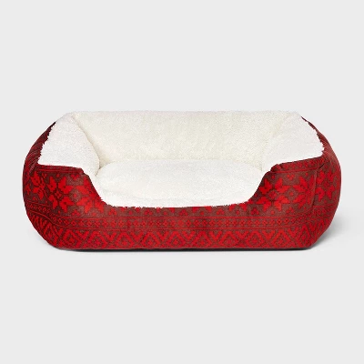 Bring a fun holiday update to your pet’s essentials with the Printed Holiday Bolster Dog Bed from Boots & Barkley™. This dog bed features red snowflake print along the exterior and an ivory faux-shearling interior for plush comfort. Filled with 10% recycled poly-fiber, this dog bed is designed for small breeds, and it’s also machine washable for easy cleaning.