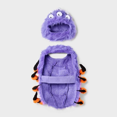 Dress up your pet this Halloween in the Spider Costume Dog and Cat Full Body Costume from Boots & Barkley™. This full-body costume for pets features a purple headpiece and a vest with orange and black legs, creating a contrasting look. Made of soft fabric, this dog and cat costume is comfortable to wear and comes with hook-and-loop closures for easy dressing and changing. Simply hand wash it for easy maintenance.